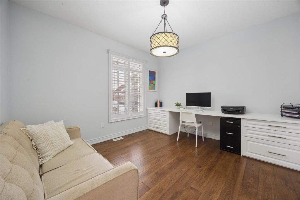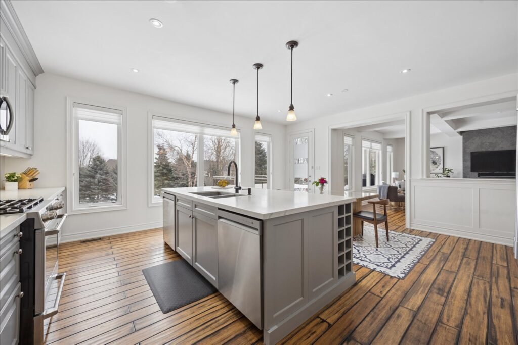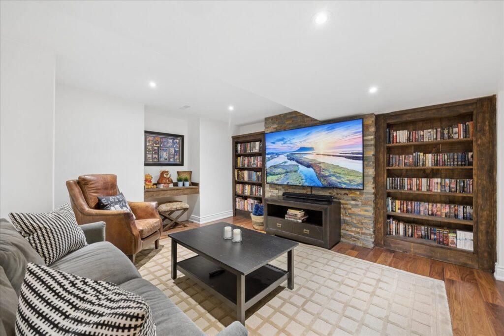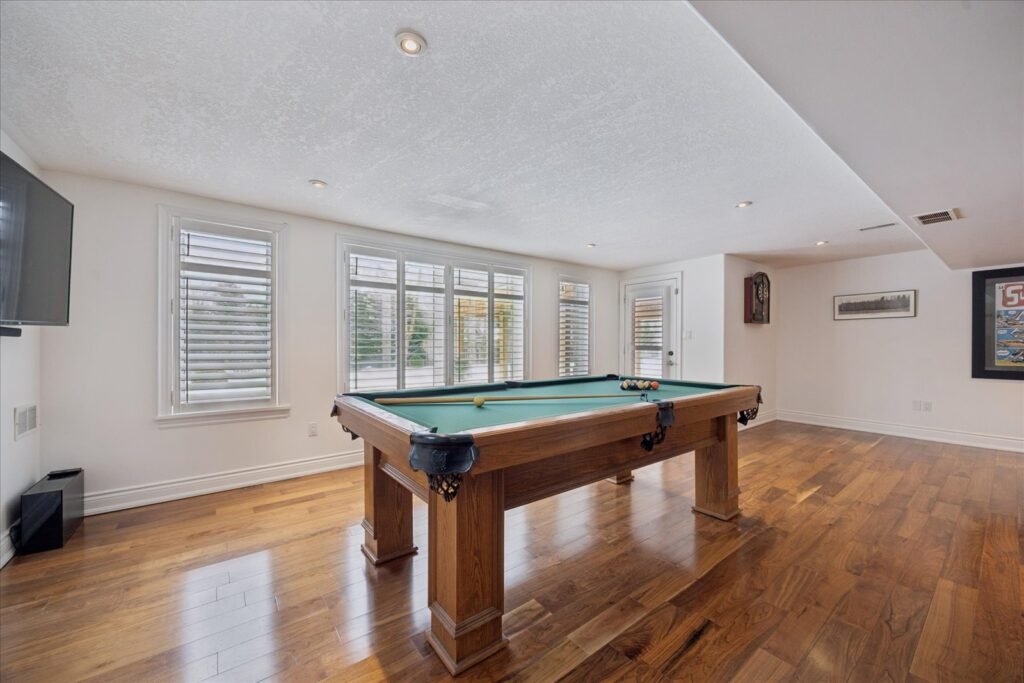 Beautifully maintained bungalow offering bright, open living spaces and an exceptional finished lower level designed for comfort and entertaining. The welcoming main floor features warm hardwood flooring throughout, creating an inviting atmosphere ideal for everyday living. The modern kitchen is equipped with stainless steel appliances, ample cabinetry, and a large centre island with seating—perfect for casual meals or gathering with family and friends. The open-concept kitchen and dining area provides seamless flow for both daily living and entertaining. The spacious primary bedroom features a large window and generous closet space, while an additional main floor bedroom offers flexibility for guests, a home office, or additional living space. The finished lower level is designed for entertaining and relaxation, featuring a large recreation area with space for billiards, a comfortable media lounge with custom built-in shelving and a striking stone feature wall, and a dedicated hobby or collector’s room—ideal for a home office, studio, or gaming room. An additional bedroom and full bathroom on this level provide excellent accommodations for guests or extended family. The professionally maintained property is surrounded by mature landscaping and stone walkways, offering a private backyard setting with outdoor space ideal for relaxing or entertaining. Located within the prestigious Wyndance Estates Golf Course community, this home is surrounded by scenic countryside and green space while remaining just minutes from the amenities of Stouffville and Uxbridge, including shops, restaurants, parks, and trails. Convenient access to Highways 404 and 407 makes commuting easy.
